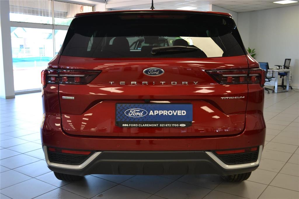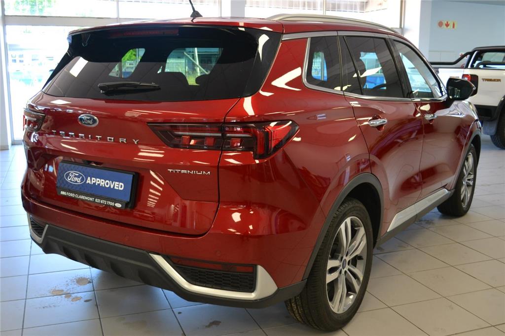 Experience the perfect blend of style and performance with the 2025 Ford Territory 1.8T Titanium. This vibrant red SUV is designed for those who appreciate both form and functionality. Under the hood, you'll find a responsive 1.8-liter turbocharged engine delivering 138 kW of power and 318 Nm of torque, ensuring a dynamic driving experience. Efficiently engineered, it offers an average fuel consumption of just 7.0 l/100km, giving you a remarkable range of up to 857 km on a single tank, making it ideal for both city commutes and long-distance journeys. The Territory's interior is just as impressive as its performance, featuring spacious seating and advanced technology to enhance your driving experience. With a comprehensive warranty covering up to 120,000 km, you can enjoy peace of mind on every adventure. The vehicle's practicality is matched by its commitment to environmental responsibility, with average CO2 emissions of 161 g/km. Choose the Ford Territory 1.8T Titanium for a reliable, efficient, and stylish driving solution that meets the demands of modern life.